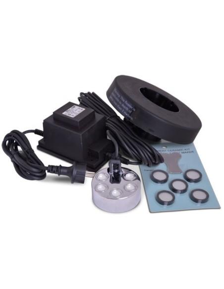 Genera una densa y persistente niebla que puede ser utilizada tanto para decoración de estanques, fuentes, figuras... como para aumentar la humedad ambiente de forma sencilla y segura.
